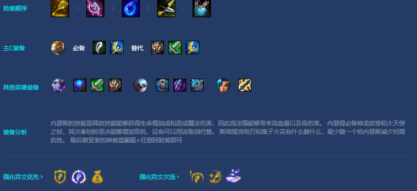 前期没有连败,如果开局拿到神龙尊者纹章,那么2阶段选秀优先拿大天使之杖,反之优先去拿铲子。 正常连败的经济是2-1有10金币,2-3有20金币,2-5有30金币,2-6有40金币,2-7有50金币,这是最低的金币基础。 如果低于这个经济,那么考虑将除了内瑟斯和神龙卡牌以外的牌都卖掉。