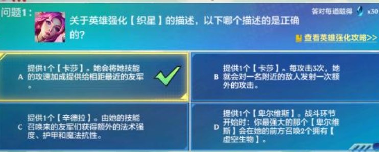 1、关于英雄强化【织星】的描述,以下哪个描述的是正确的?