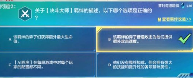 答案:B.该羁绊的弈子普通攻击为他们提供额外攻击速度。