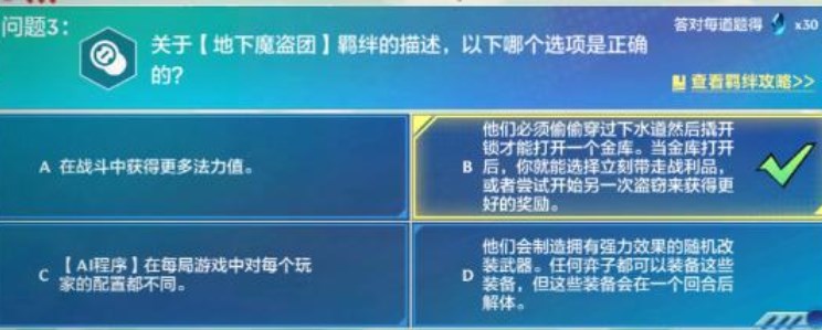 3、关于【地下魔盗团】羁绊的描述,以下哪个选项是正确的?