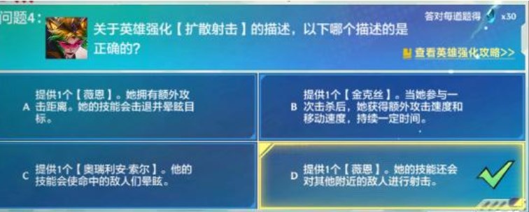 4、关于英雄强化【扩散射击】的描述,以下哪个描述的是正确的?