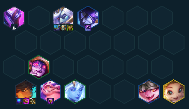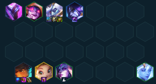 利用前期优势尽快拉七,小搜出婕拉开出2幽影的羁绊,一般不在7人口做停留,存钱迅速上八,选秀有佐伊/法师纹章都可以无脑拿。