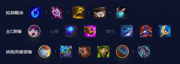 2.装备推荐:主c璐璐【蓝buff、法爆、巨杀、大帽、大天使】;
