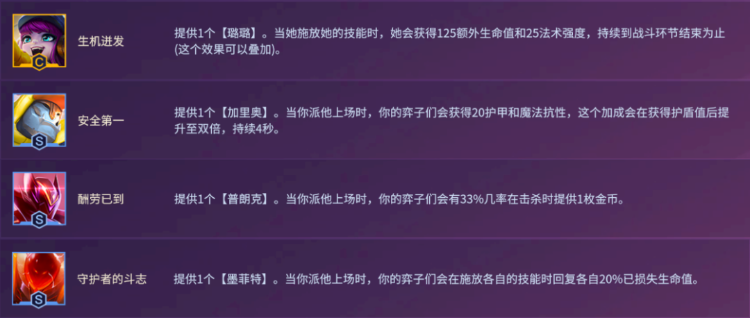 4.英雄强化:【璐璐—生机迸发、加里奥—安全第一、船长—酬劳已到、石头人—守护者的斗志】;