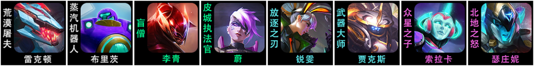 主坦锐雯/机器人:【日炎、救赎、龙牙、反甲、离子】等 ;