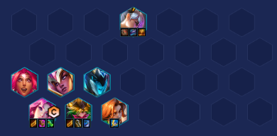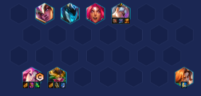 全2星中期很强势,但若不能追出3星,后期输出就很乏力,靠其他卡整体质量也许就吃个分;若能3星注意站位,防对面女枪或者高AOE法系输出秒掉卡莎和VN,则任何阵容都可一战。