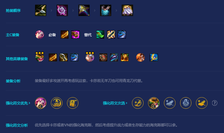 装备最好多攻速开再考虑玩这套,卡莎若无羊刀也可用青龙刀代替。