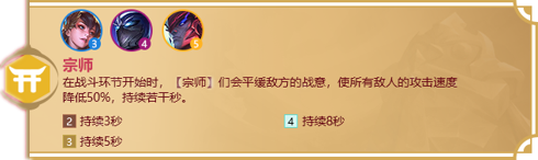 效果:在战斗开始时,宗师会降低敌人50%攻击速度.