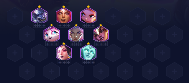 大后期拉人口根据场上的海克斯强化决定,一般没有任何转职的情况下,7人口可上索拉卡补充阵容的范围回复,也可以补充艾克开2秘术羁绊。
