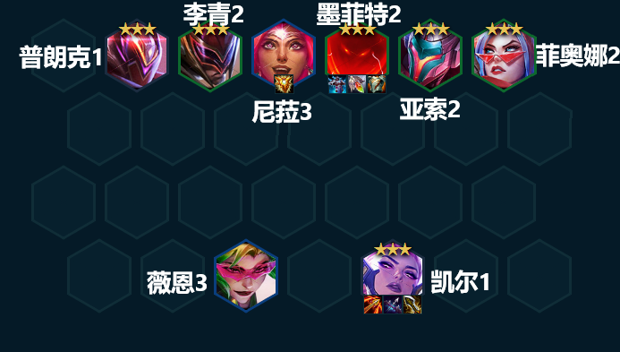 阵容质量:全员3星,薇恩、劫、尼菈2星即可。
