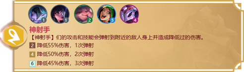 效果:每过若干秒,所有猎人门就会攻击生命值百分比最低的敌人,造成额外伤害。