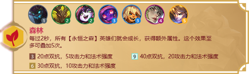 效果:永恒之森英雄们就会成长,获得额外属性。
