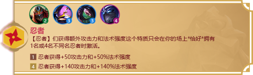 效果:在战斗环节开始之前,[刺客]们会跳到敌方后排,[剌客]们的技能可以暴击,并且他们会获得额外的暴击伤害和暴击几率。