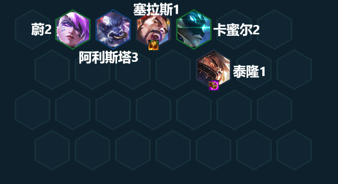 阵容组成:蔚、阿利斯塔、塞拉斯、卡蜜尔、泰隆