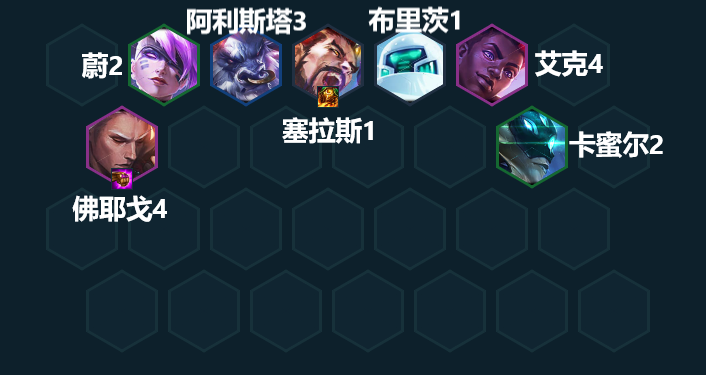 阵容组成:蔚、阿利斯塔、塞拉斯、布里茨、艾克、佛耶戈、卡蜜尔