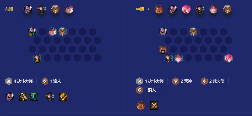 阵容成型怕的阵容不多,成型难度太高,能玩的机会也非常少,对决斗转职的需求非常高。但后期成型后,亚索,天使,瞎子三c的阵容,容错非常高。