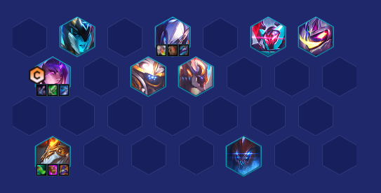 卑尔维斯必备最后的轻语和汲取剑,续航装备有多种选择,比如:海克斯科技枪刃,这里的主要用意应该是用于返补前排的血量,让瑟提单卡能够抗更多的伤害,也可以选择正义之手或者汲取剑加强自身的续航能力,如果有为血归来这个英雄强化可以优先出海克斯科技枪刃,第三件装备优先出巨人捕手,毕竟第一攻击目标是对手的超肉前排; 瑟提必备救赎和棘刺背心,救赎可以提供免伤效果,棘刺背心则是可以降低暴击伤害,第三件可以根据实际对局进行选择,想要增加魔抗就补巨龙之爪或者石像鬼石板甲,想要增加血量就补狂徒铠甲,前期想连胜就补日炎斗篷