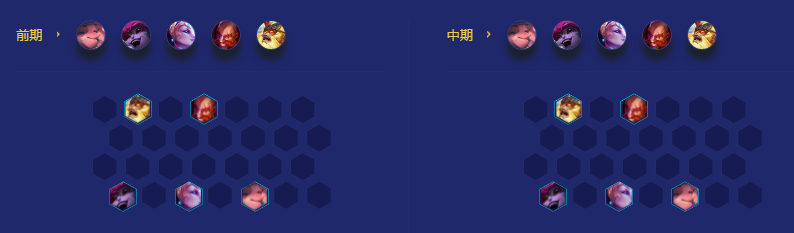 2-1不上人口可以走连败快速补齐小炮的神装,中途不上人口3-1把小炮d到三星就可以直接开始上人口,后续皎月不三星可以把鸟盾给到三星提莫或者千珏。4-5左右上7补前排。5-1上8级继续提升整体的质量。