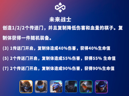 3未来战士:创造1个传送门,复制体获得25%生命值且造成25%伤害。