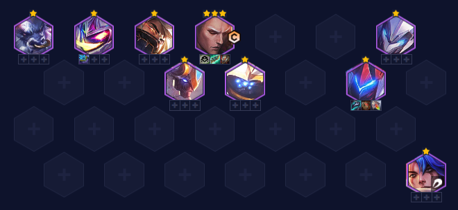 这套需要必备机甲转职,不能强玩,现在对局节奏比较快如果第一/二次符文选择后还没有机甲转职,直接转型其他阵容。2-1升4,2-5升5人口,过渡阵容能开3/4魔盗团很优质,经济收益会很高,如果没有就开3机甲+4斗士。记得留棋子泰隆,后期不好搜。前期带机甲转的强势打工棋子比较建议雷克顿、加里奥、墨菲特、锐雯。装备上离子、科技枪刃最优,其次考虑泰坦与坦度装备。
