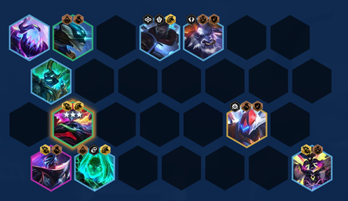 卡密尔+派克+乐芙兰+慎+阿利斯塔+薇古丝+烬+扎克(召唤物)+蕾欧娜。