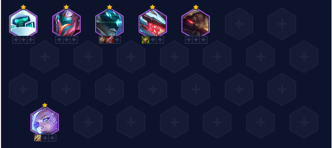 4-5左右升级8人口,追出2星沃里克找到莫德凯撒开5源计划,稳血后升9人口添加崔斯特或控制棋子厄加特、费德提克、迦娜,如果遇到黑客卡蜜尔/德莱文/纳尔可上一个2星莫甘娜来拖时间。