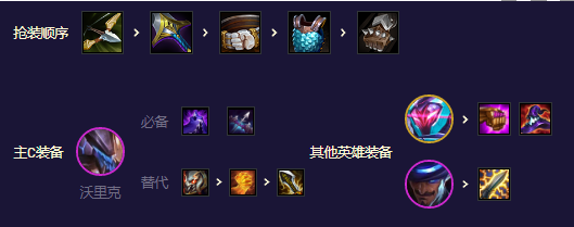 狼人春哥必备,其他ad装备捡垃圾都可以,铁男带法强装或肉装捡垃圾也可以,卡牌带电刀减魔抗。若是铁男装备满了或者卡牌先2星,可以把法装先给卡牌。
