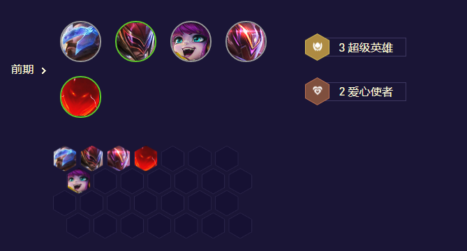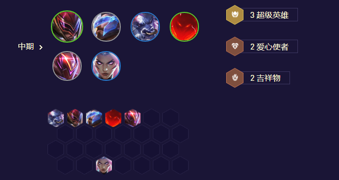 只推荐开局发金钟罩、生机迸发、最好进攻这三个强化中1个时玩,这三个都是爱心单位的强化,这阵容就是需要你的爱心活下来多放技能,通用强化里推荐战斗法师站前两排,公理圆弧放技能快,珠光可以不做法爆,爱心心或转职可以7级不要牛改开6爱心