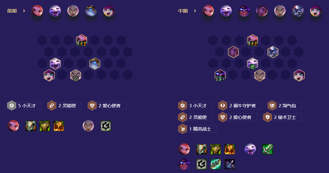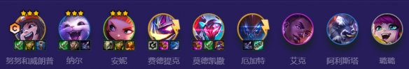前期5连败开,3-1可以根据质量上好羁绊,保证激活至少3天才即可,这样即使发强化也不会偏,3-2d出5小天才,加一个怪兽外援,或者是萨米拉,萨米拉带天才转最优,安妮和纳尔二星即可平稳上8,7级不用d卡,直升人口,8级可小d质量,牛头,艾克,或者5费卡来加强度,然后就存钱上9,把5费卡搜到二星即可成型吃鸡。