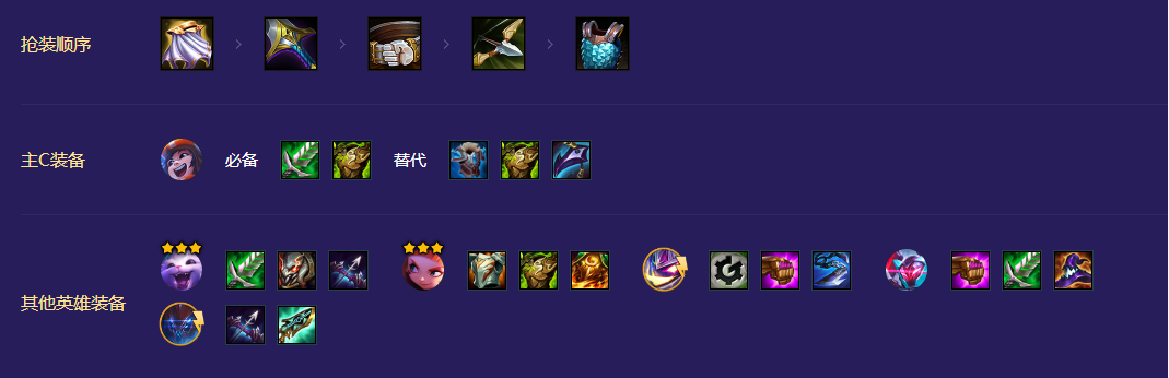 安妮带肉装过渡,保血量,输出装交给天才转的外援,努努的装备饮血回复类的可以给纳尔。