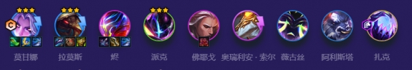 该阵容克制黑客阵容如妖姬,但是不好打机甲枪以及迅捷卡莎等能快速消灭拉莫斯的阵容,必要的时候可以将扎克以及阿利斯塔往前放一放帮助拉莫斯吸引火力!