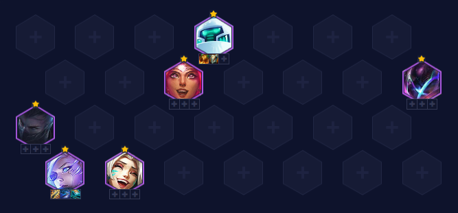 3-1或3-2升6,2星棋子较少搜卡提升质量尽量不要断连败,建议添加派克亚索换尼菈。派克控制能力超强可用到最后,而尼菈的续航能力超强,可大幅度增加连胜概率。