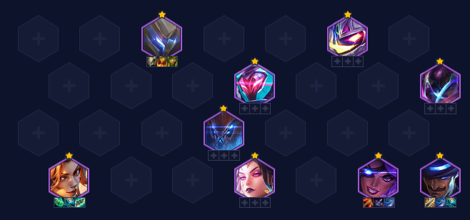 控制棋子方面,低费棋子只建议派克,其他控制建议升级8/9人口后补5费的费德提克、迦娜、辛德拉与厄加特,其中辛德拉是必备的,后期拉人是阵容上限的体现。其他棋子虽说无法享受到卓尔加成增益,但控制能力一流,我们又不是用其打输出,这点大家一定要理解。