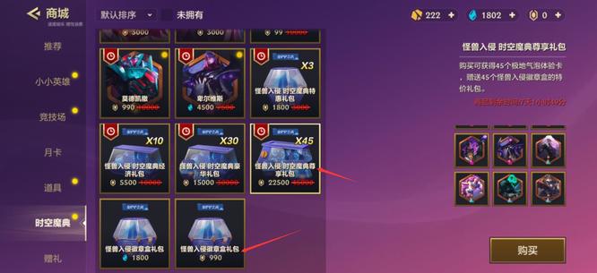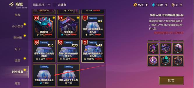 1、如果玩家准备氪金的话,那么直接在商城中购买关守入侵时空魔典礼包和礼盒就可以快速集齐魔典。单个礼盒9.9元包含一个礼盒,一个礼盒可以开出三个徽章。建议优先购买礼包,尊享礼包225元一个,包含45个徽章盒。