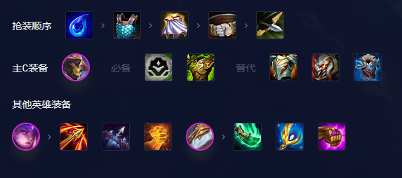 副C位卑尔维斯:物理输出装备都可,不算吃装备最优是飓风,飓风过墙能快速打到敌方后排,与索尔的群体技能配合,更容易收割敌方残血棋子。第二件建议轻语,更容易突破敌方前排。