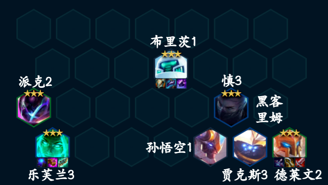 阵容组成:布里茨、慎、派克、孙悟空、德莱文、贾克斯、乐芙兰