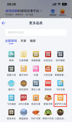 4.选择想要卖号的游戏品类金铲铲之战。