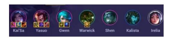 科加斯、玛尔扎哈、卡萨丁、雷克顿、卡莎、维克兹、亚索、卑尔维斯。