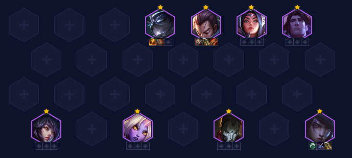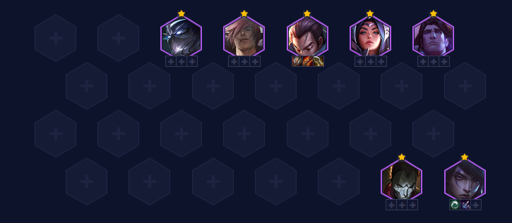 4-1左右升7(如果是索尔或德莱文都可3-5左右升7人口),找到亚索与厄斐琉斯开2艾欧+2射手+2壁垒。