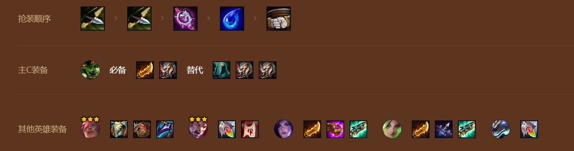 装备狼人和瑟提必满,剩余物理输出给上泽丽,法术输出给上卡莎。