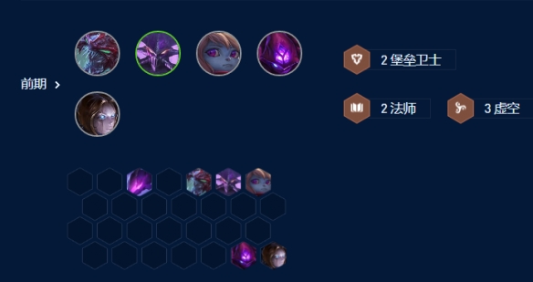 2阶段以3虚空为中心,补波比开2壁垒,后排随便选个长手的带装备给维克兹打工,没有必要特意去凑2法师,你单挂个1星金克丝都很强。