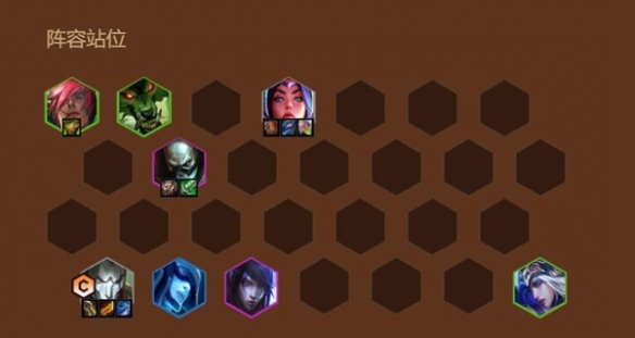 艾希单独站位右下角(安全环境输出),其余主流角色放置左侧。