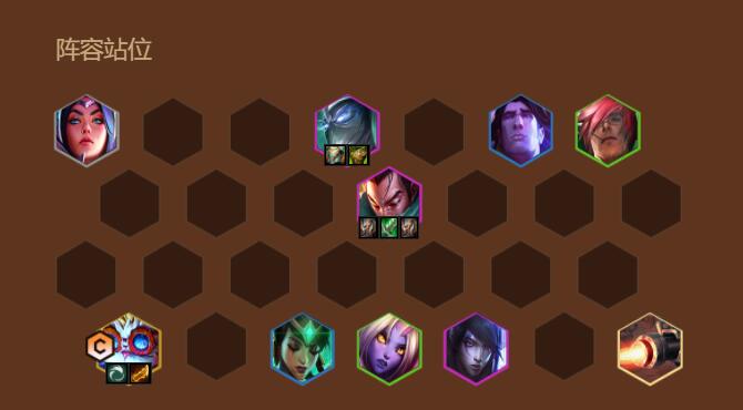 阵容站位: 大头合炮台避开会切到他们的影响,比如艾克卡特压缩这些可以突脸后排的英雄,保证炮台不死很重要。