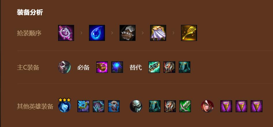 前期虚空法师过度,3虚空2法师,维克兹的装备优先给马尔扎哈,可以保证前期阵容输出,但是怕潜行者,卡特和劫,遇到劫扎堆站。