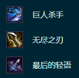 推荐装备:最后的轻语+巨人杀手+无尽之刃