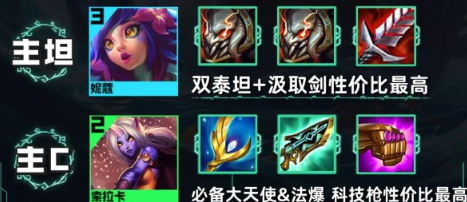 索拉卡的装备就是大天使是核心,这个装备保证阵容后期能够有足够的伤害和续航,其次科技枪、珠光护手也是标配。