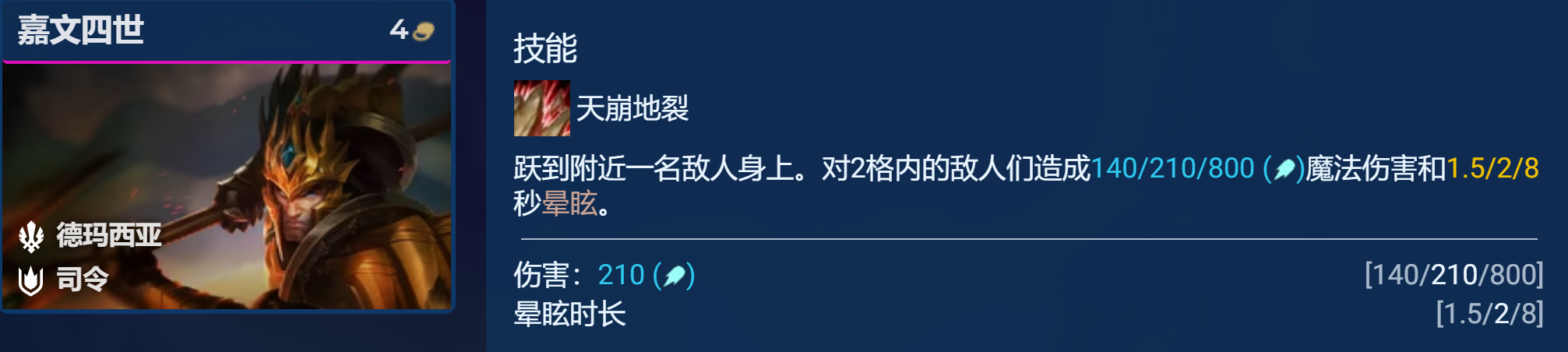7德玛西亚羁绊的精锐不仅能获得45的双抗,还能为站在附近一格内的棋子提供这个加成(相当于全员4堡垒),最重要的是还能多3件光明装备。
