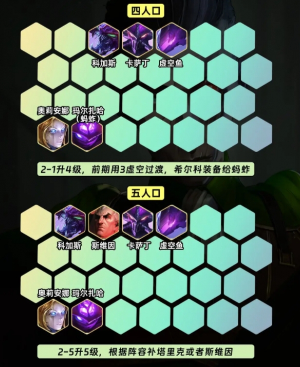 2-1升4级,前期用3虚空2法师过渡