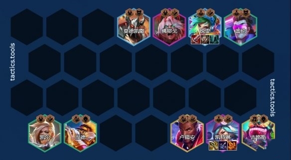 8人口补巴德和卢锡安。卢锡安没来可以用女枪一起开爵士乐队,这个阵容的核心就是拼多多超多的羁绊数量。利用爵士羁绊每个羁绊都会增加血量和输出,这样瑞文的输出和坦度都会提升。