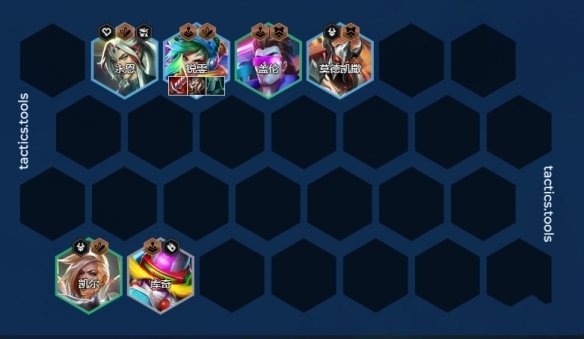 6人口,补充棋子开出刀锋羁绊,盖伦搭配铁男一起开秘术护卫前排增加坦度。